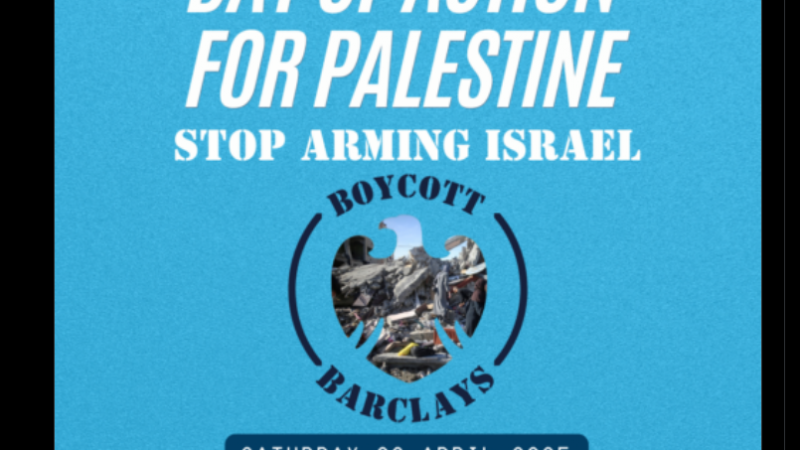 A list of the events taking place and locations during today’s ‘boycott Barclays day of action’ is available on the PSC website.