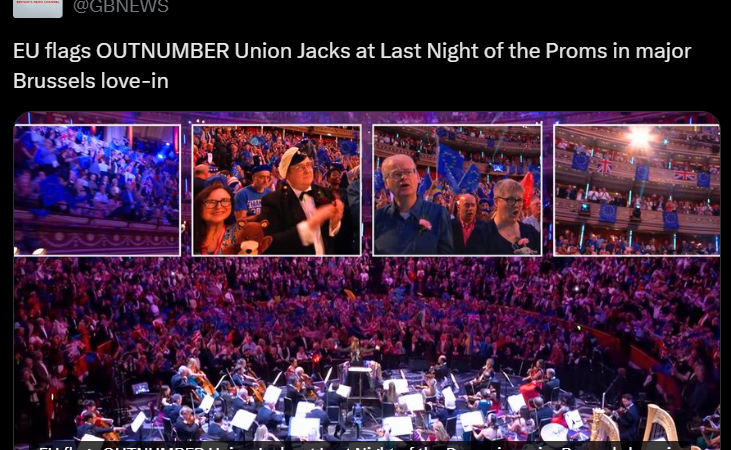 “EU flags OUTNUMBER Union Jacks at Last Night of the Proms in major Brussels love-in.”