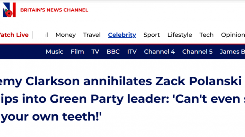 “Jeremy Clarkson annihilates Zack Polanski as he rips into Green Party leader: ‘Can’t even sort out your own teeth!’” it headlined.