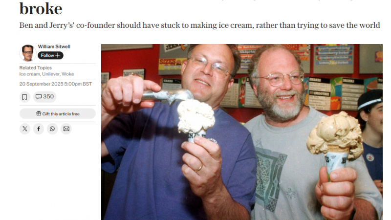 Just last week, the Telegraph ran the headline: “When will the Left learn? If you go woke, you go broke,” in response to the resignation of Ben & Jerry’s co-founder Jerry Greenfield. His advocacy for progressive causes, the article claimed, had become “insufferable.”