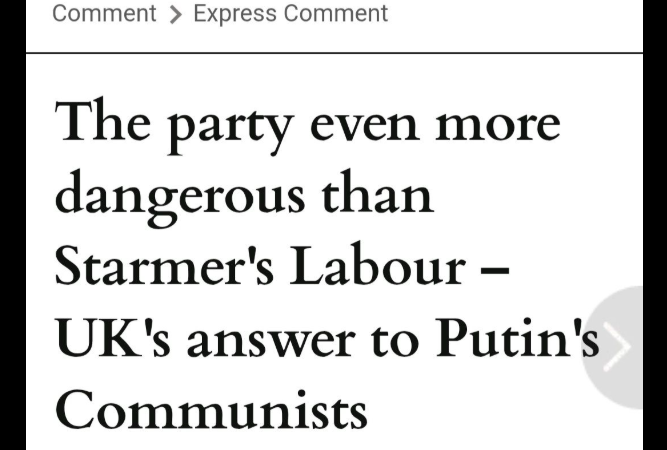 “The party even more dangerous than Starmer’s Labour – UK’s answer to Putin’s Communists,” headlined the Express.
