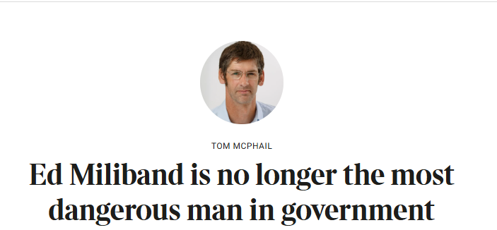Before naming names, the piece opens with a familiar swipe at Miliband, accusing him of pushing up costs and weakening energy security by championing renewables.
