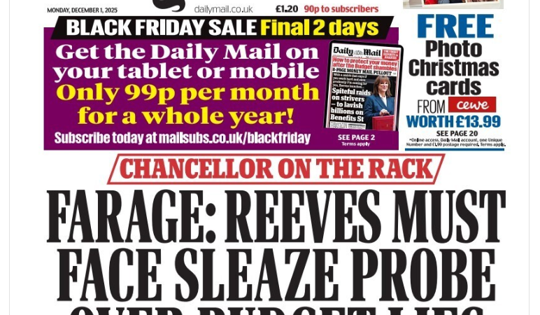 Other right-wing papers were at it too. “Farage reports Chancellor to officials for misleading public to justify her tax rises,” read the Daily Telegraph’s front page.