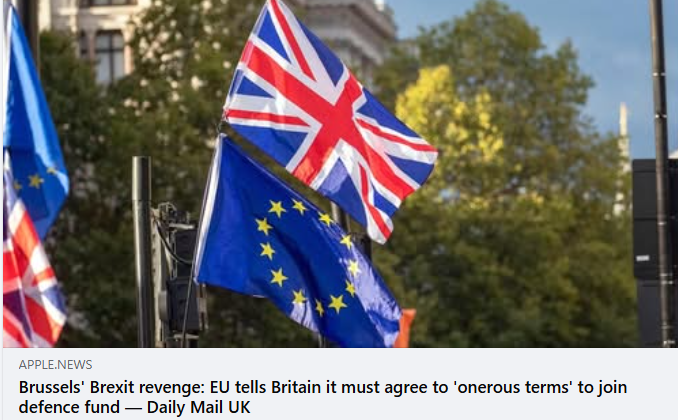 The latest example comes courtesy of the Mail on Sunday, which claims that the EU is punishing the UK with ‘onerous terms’ for access to its £130bn defence fund.